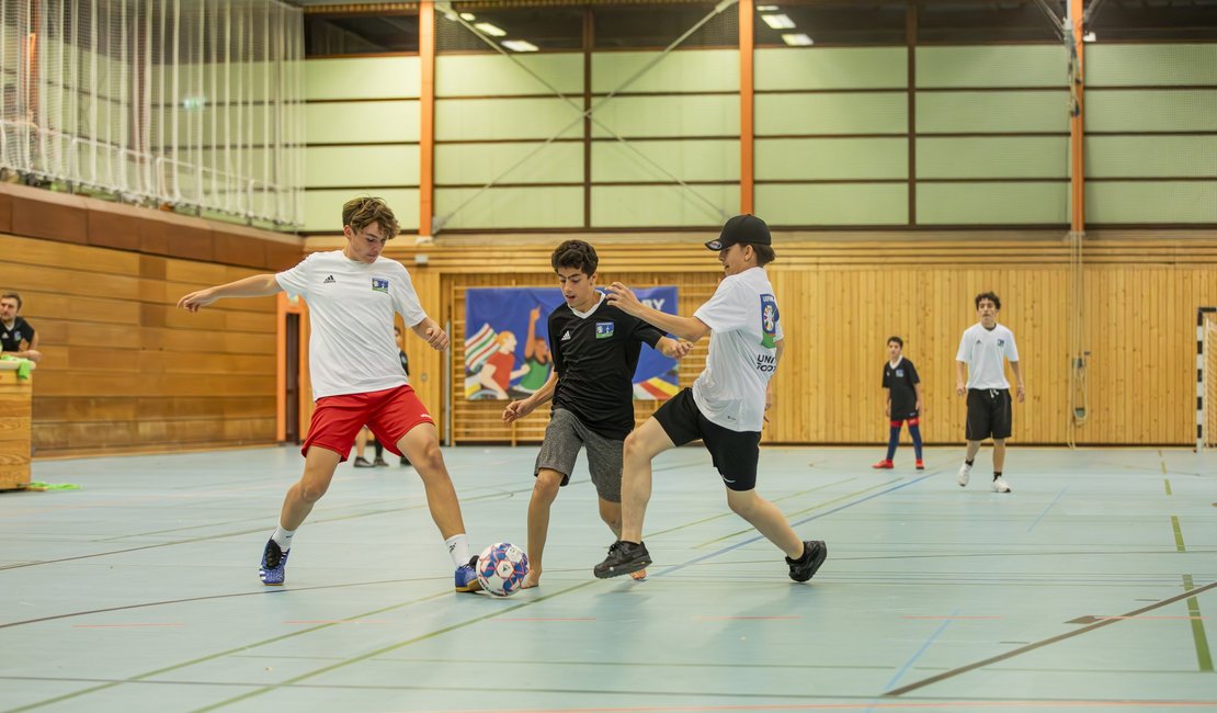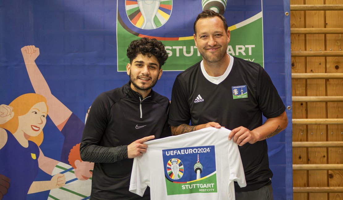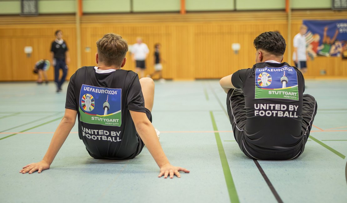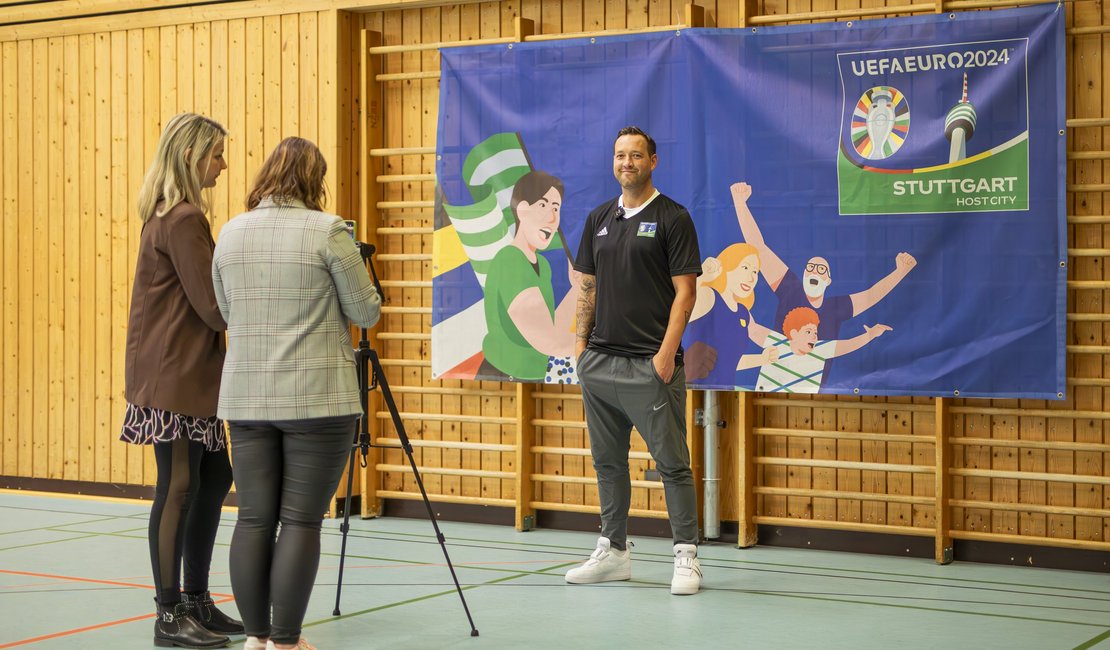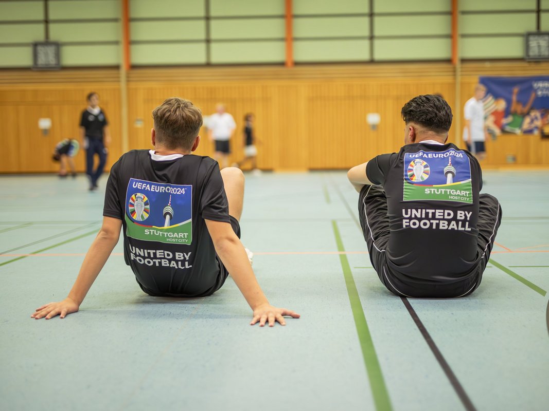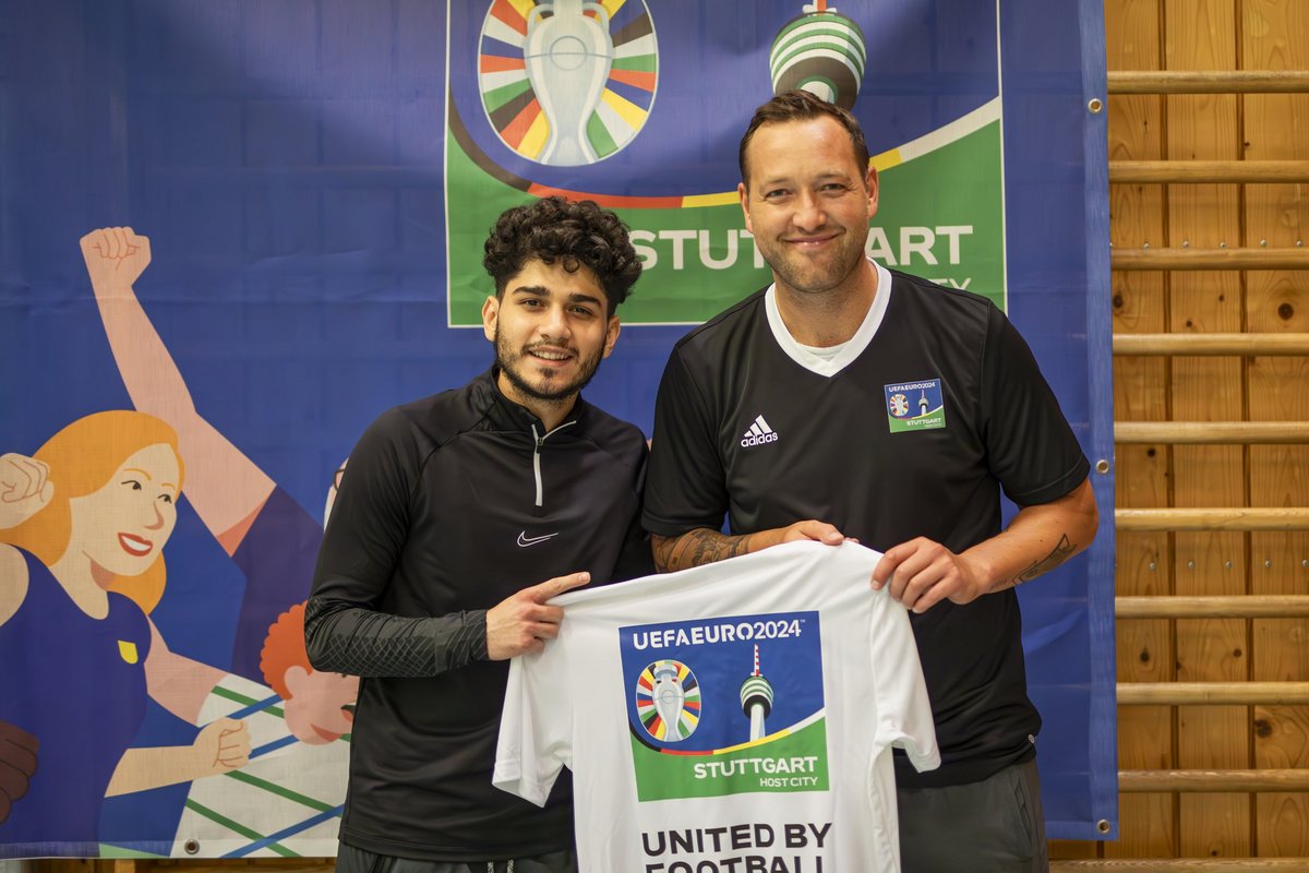 Fairness und Fußball sind zwei Begriffe, die eng miteinander verbunden sind und die beim „Fairen Fußballturnier“ der Host City Stuttgart am Freitag, 13. Oktober 2023, im Mittelpunkt standen. Knapp zwei Monate vor dem Final Draw und der Gruppenauslosung zur UEFA EURO 2024 rollte der Ball in der Sporthalle Nord: Rund 50 Jugendliche und junge Erwachsene im Alter von 14 bis Mitte 20 kickten beim Fairen Fußballturnier, organisiert in Kooperation mit dem Gemeinschaftserlebnis Sport (GES) und ihrem Projekt „Nachtschwärmer“ sowie dem Jugendhaus Nord. Ebenfalls dabei: Julian Schieber, ehemaliger Bundesliga-Profi, der u.a. für den VfB Stuttgart, Borussia Dortmund oder Hertha BSC Berlin gespielt hat, zum Turnier.
