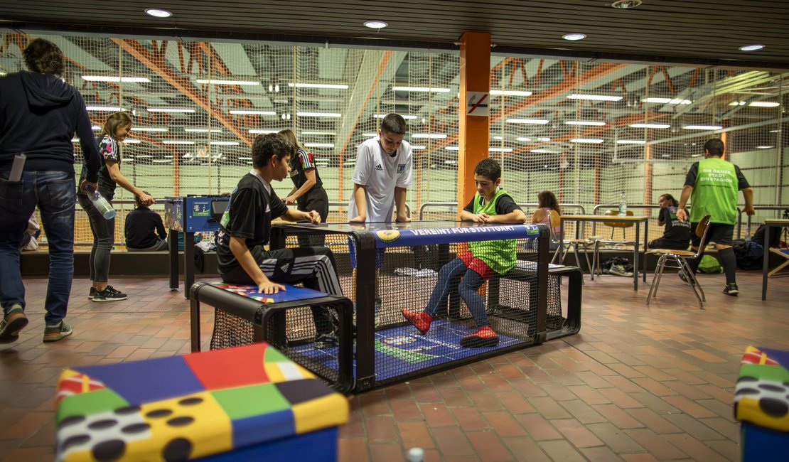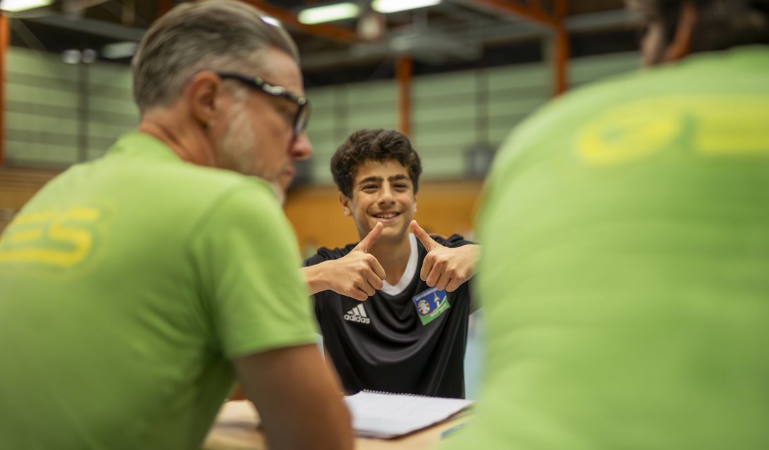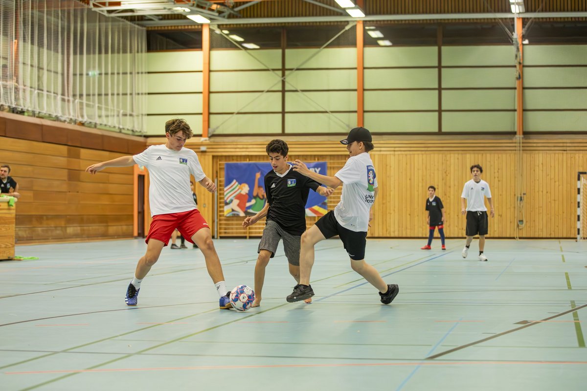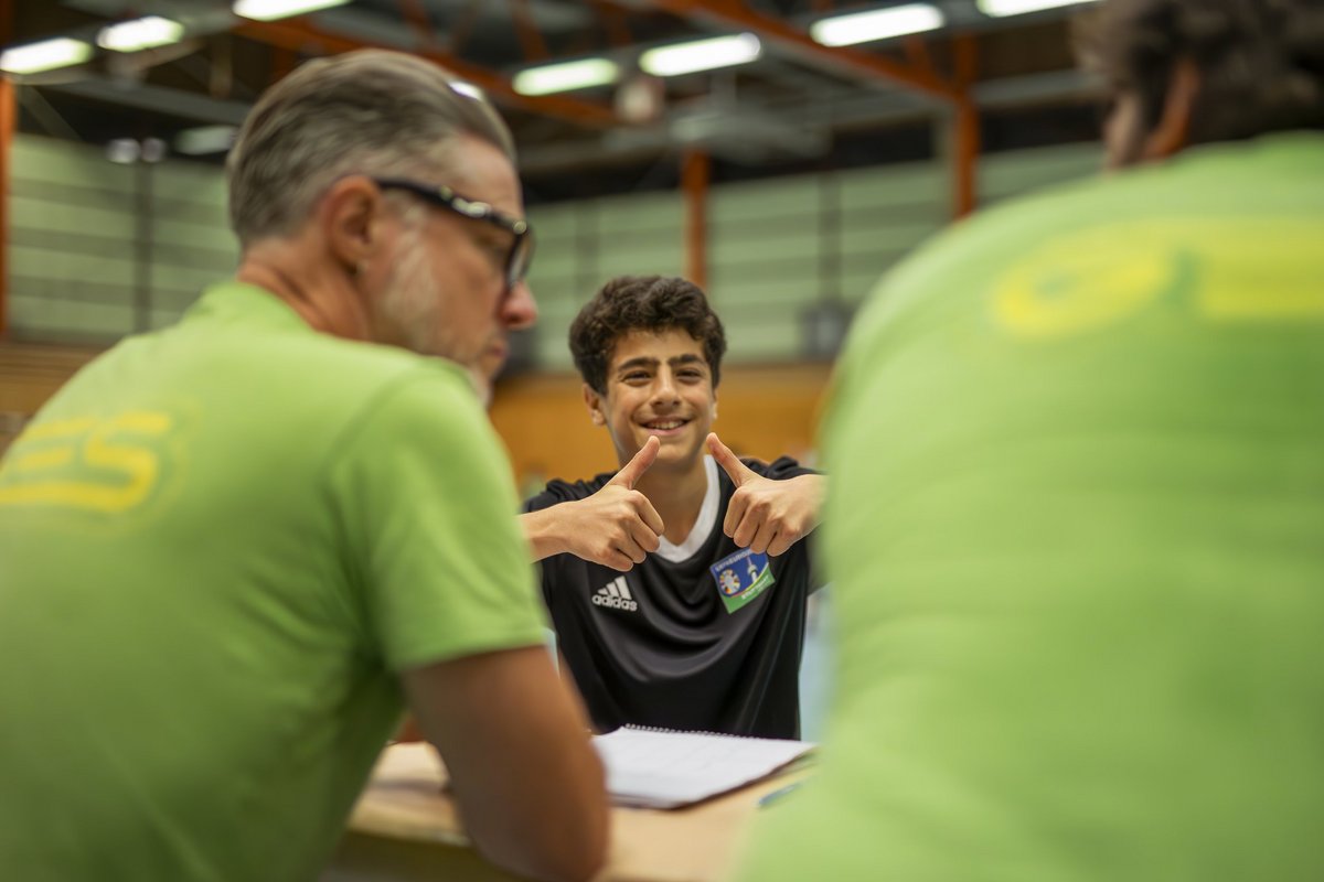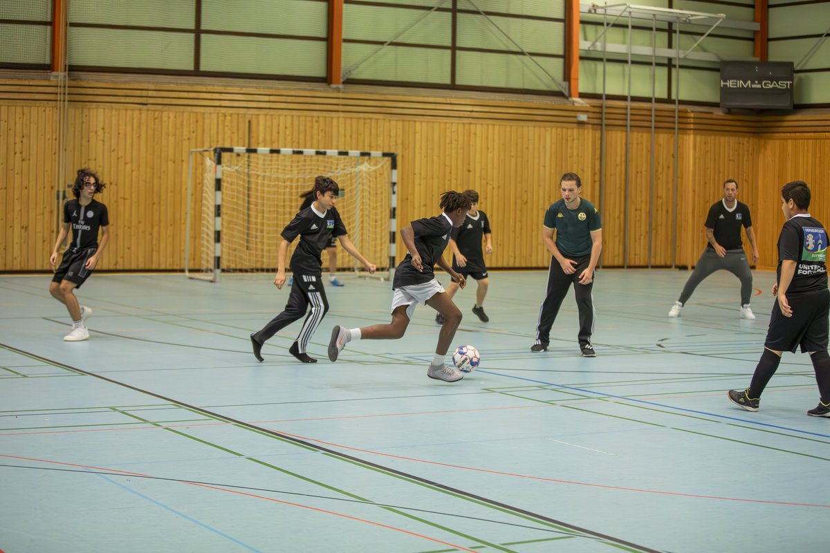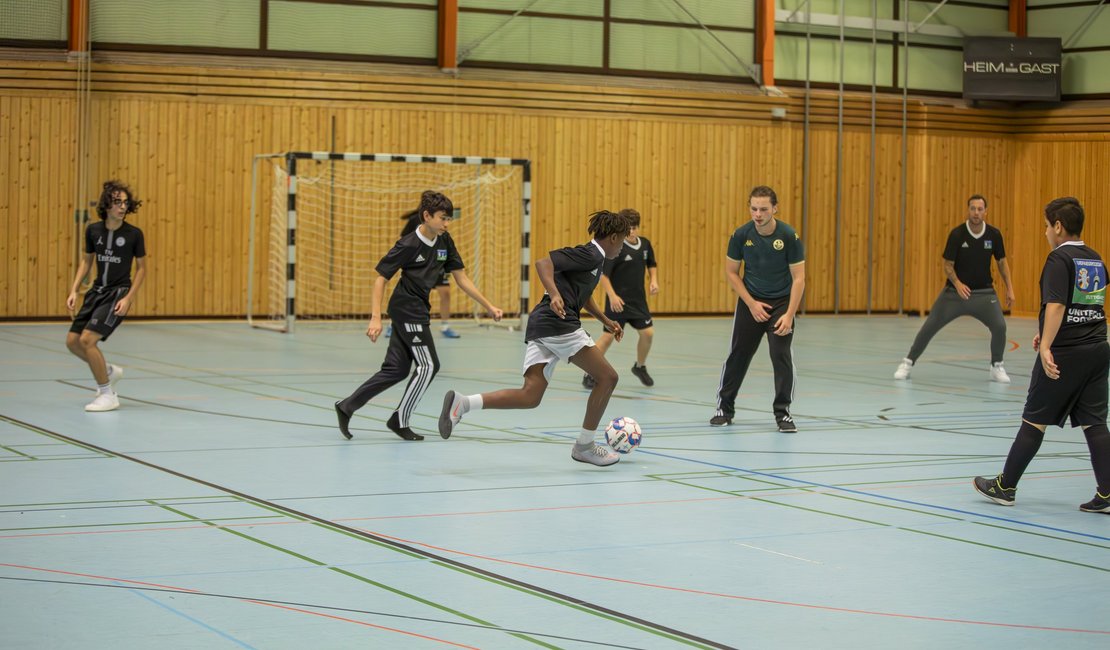 Fairness und Fußball sind zwei Begriffe, die eng miteinander verbunden sind und die beim „Fairen Fußballturnier“ der Host City Stuttgart am Freitag, 13. Oktober 2023, im Mittelpunkt standen. Knapp zwei Monate vor dem Final Draw und der Gruppenauslosung zur UEFA EURO 2024 rollte der Ball in der Sporthalle Nord: Rund 50 Jugendliche und junge Erwachsene im Alter von 14 bis Mitte 20 kickten beim Fairen Fußballturnier, organisiert in Kooperation mit dem Gemeinschaftserlebnis Sport (GES) und ihrem Projekt „Nachtschwärmer“ sowie dem Jugendhaus Nord. Ebenfalls dabei: Julian Schieber, ehemaliger Bundesliga-Profi, der u.a. für den VfB Stuttgart, Borussia Dortmund oder Hertha BSC Berlin gespielt hat, zum Turnier.
