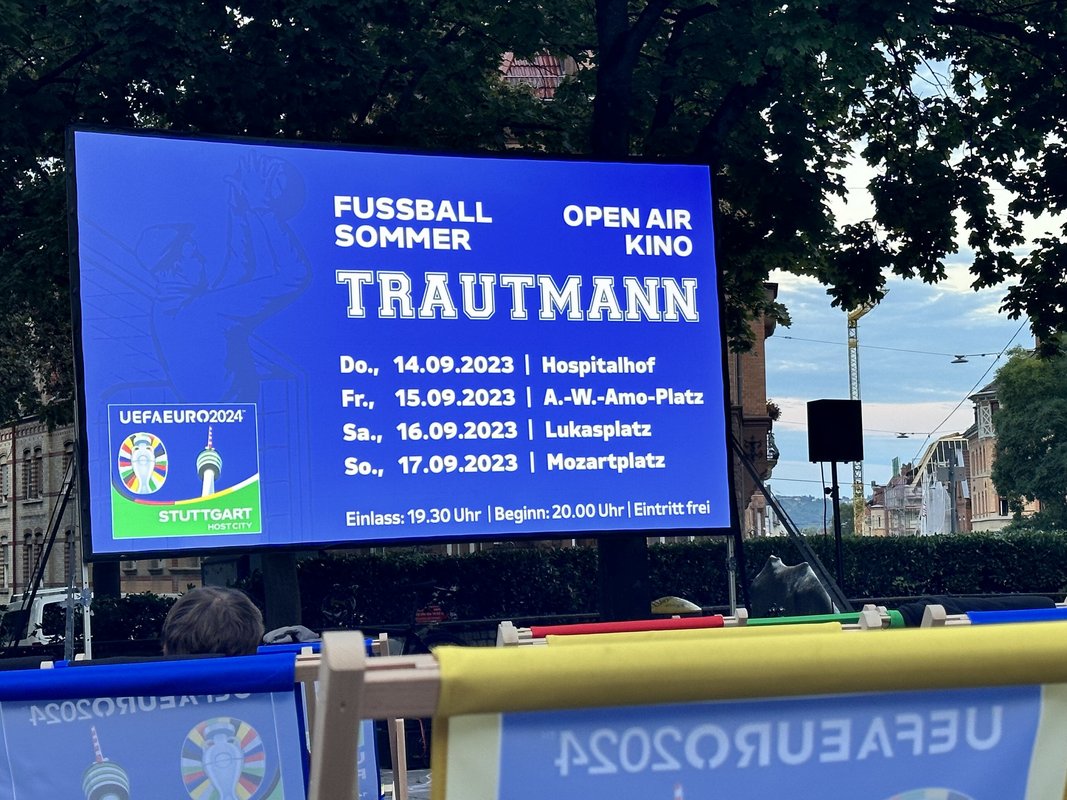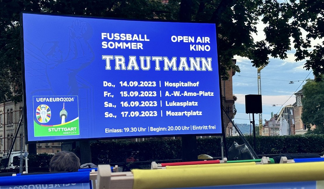 An insgesamt vier Abenden – vom 14. bis 17. September 2023 - hatte die Host City Stuttgart seine Bevölkerung zum kostenlosen Fußball Sommer Open Air Kino eingeladen und zahlreiche Gäste erschienen an den vier Spielorten Hospitalhof, Anton-Wilhelm-Amo-Platz, Lukasplatz und Mozartplatz. Auf der Leinwand gezeigt wurde mit „Trautmann“ die spannende Geschichte um die spektakulären Paraden des legendären Torwarts Bert Trautmann auf der Leinwand gezeigt. Host City Botschafter Cacau ließ es sich nicht nehmen, die Gäste mit einer Botschaft zu begrüßen und auf den Film einzustimmen.