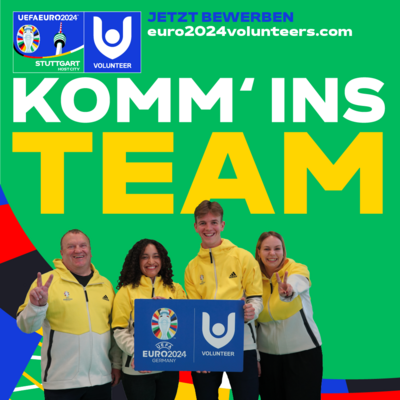 Anpfiff für die freiwilligen Helfer:innen: Genau ein Jahr vor dem Anpfiff der UEFA EURO 2024 in Deutschland wurde am 14. Juni 2023 die Volunteer-Bewerbungsplattform für das Turnier geöffnet. In einem gemeinsamen Programm und mit einem eigenen Logo suchen die UEFA, Stuttgart und die anderen neun Host Cities insgesamt 16.000 Volunteers.